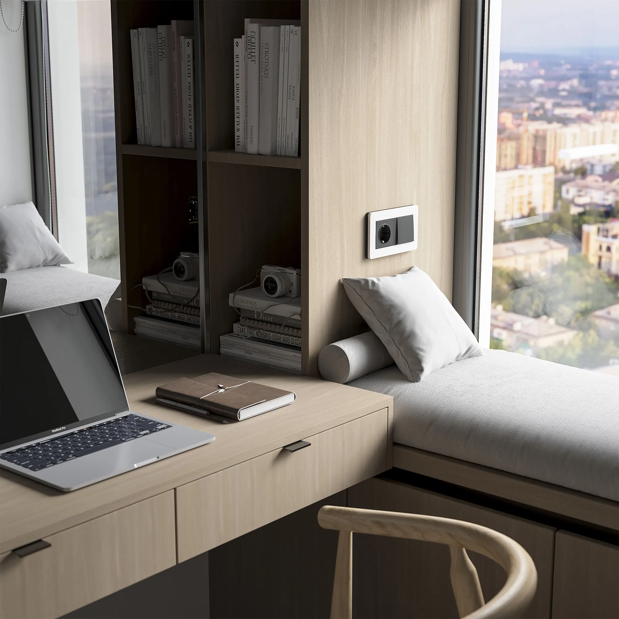Коллекция Split переосмысливает привычные электроустановочные изделия, превращая их в элементы современного декора. Благодаря продуманному сочетанию цветов, форм и тактильных ощущений, рамка белый/чёрный становится не просто обрамлением, а визуальным фокусом на стене.