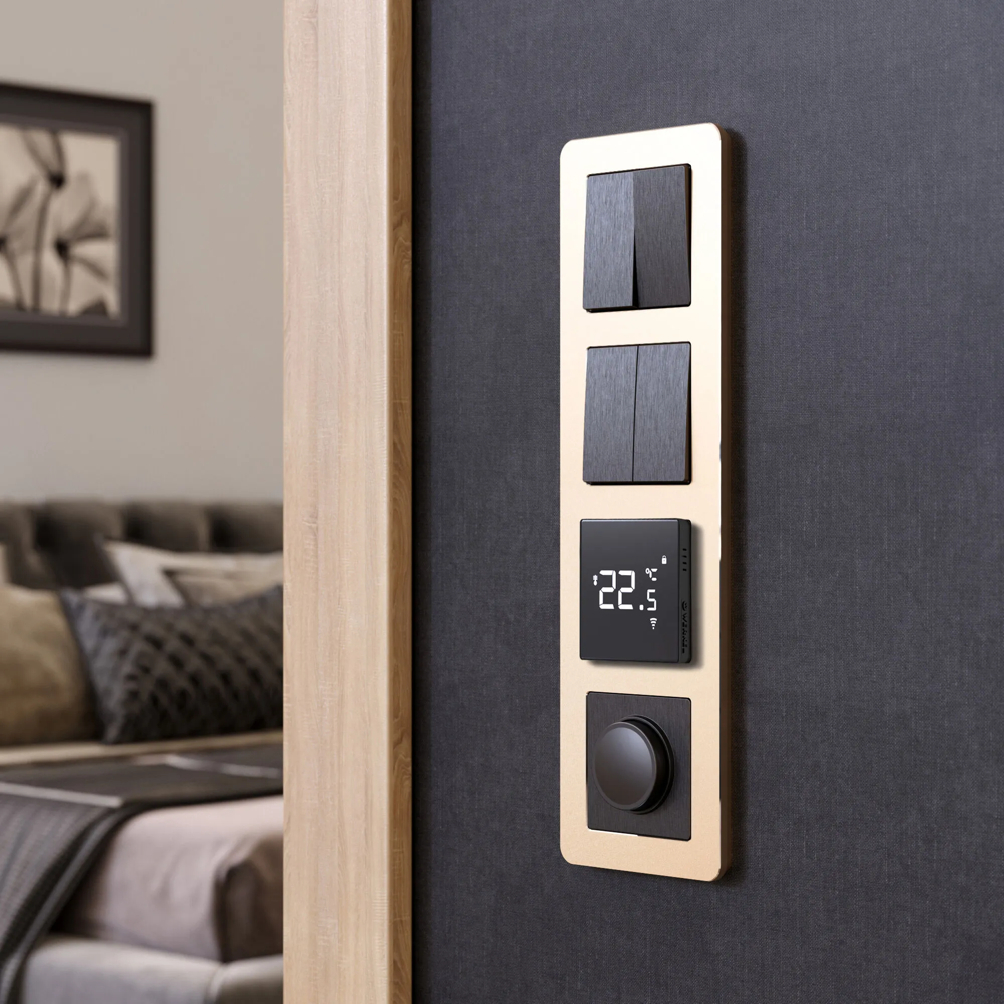 • Премиальный дизайн — благородный цвет шампань, матовая текстура и аккуратные фаски создают эффект дорогого и качественного исполнения.