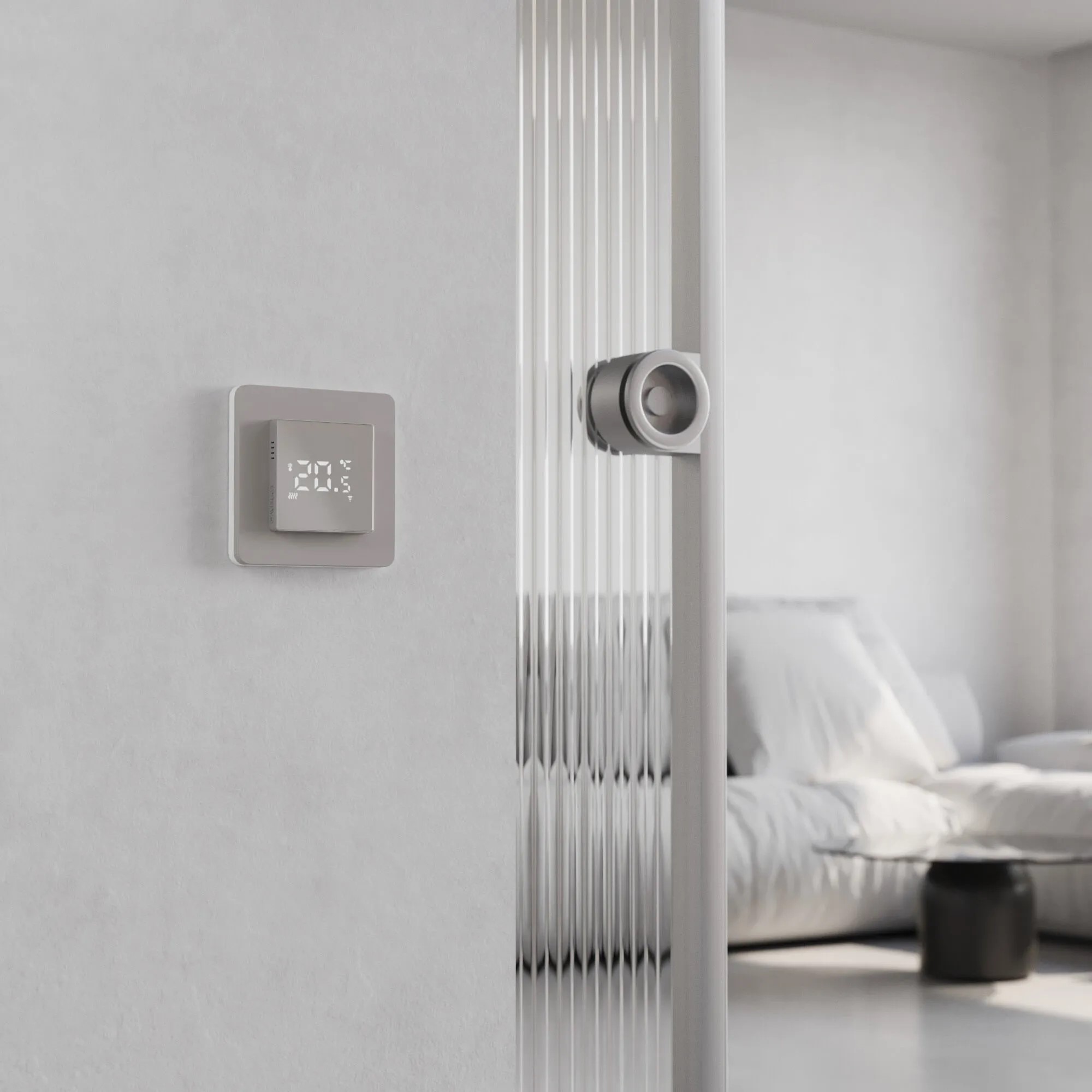 • Прозрачность визуально устраняет границу между стеной и устройством.