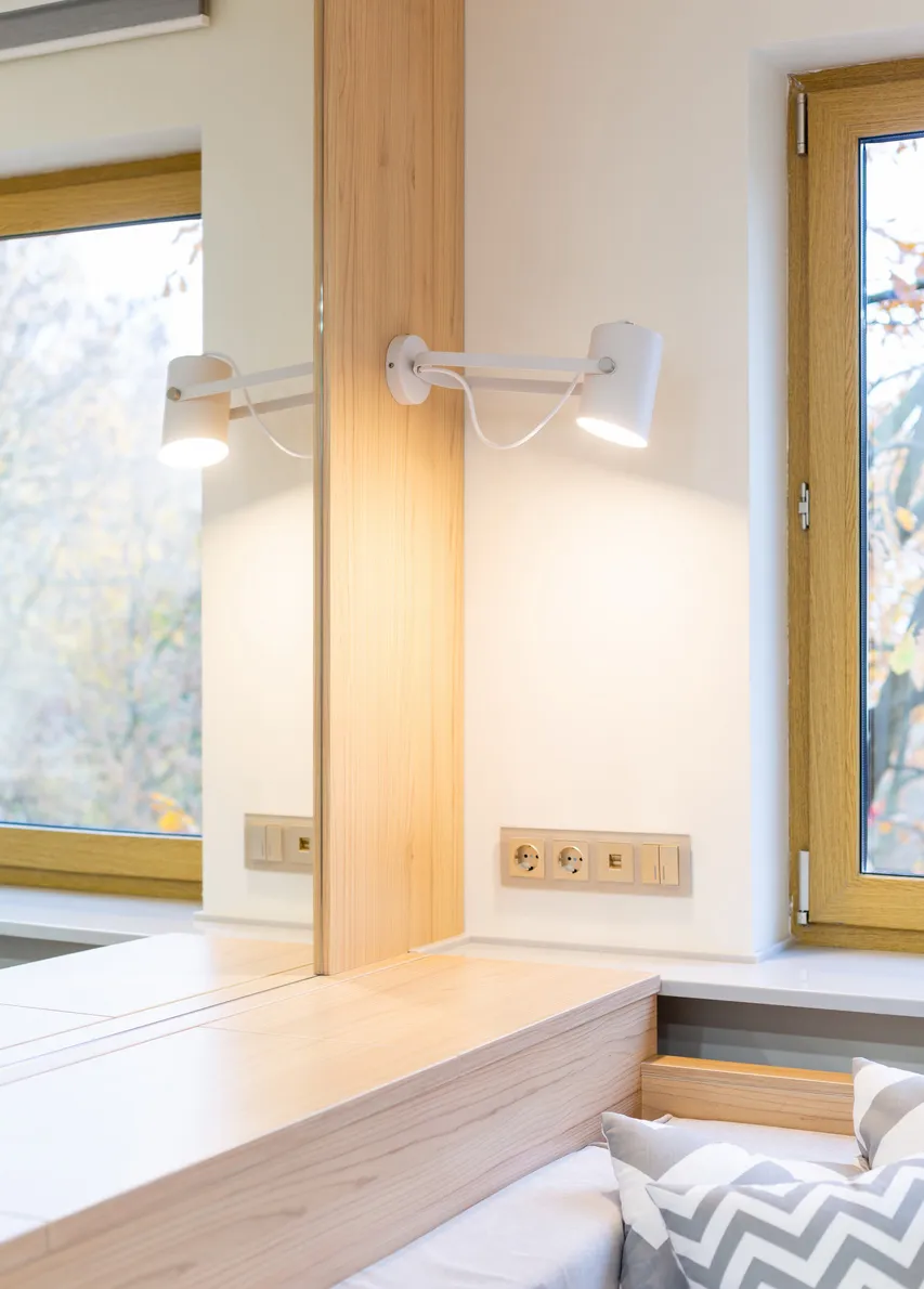 Гармоничным завершением интерьера стали электроустановочные изделия Werkel™. Эффектные механизмы с лицевыми панелями в благородном цвете шампань рифленый обрамлены элегантными рамками из закаленного стекла серии Favorit. Имитация шлифованного металла создает мягкие переливы на свету, добавляя интерьеру изысканности, а строгие стеклянные рамки подчеркивают современный стиль помещения .